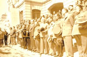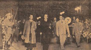 President Quezon renders homage to the Heroes of our Independence on Friday 9th at 10:30AM before the Independence Monument. He was accompanied by U:S: Ambassador Josephus Daniels, General Benecio Lopez, Chief of Military Affairs of this Area; Octavio Reyes Espindola, Head of Protocol, several members of the U:S: Embassy and Mr. Quezon’s retinue.