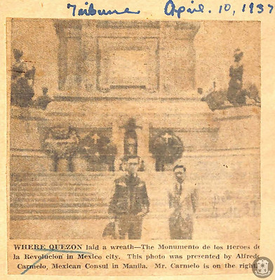 There is no doubt that the Philippines has the right to feel included in the great family of Latin countries of the American Continent. Because of its cultural background, its history, its material and spritual ties it has always belonged to the group of peoples of Latin America. The impression of the oncoming visit of President Quezon is as if Mexico were awaiting an old and brotherly friend it had never forgotten and held dear in spite of many years of separation due to adverse circumstances.