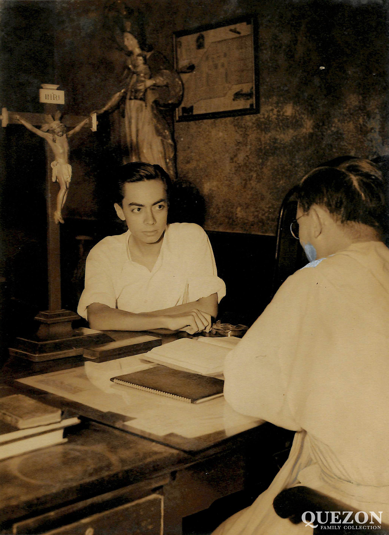 But the son and his reality would rather elude and it is task monumental to find him or worse yet to get hold of his telephone number. But it isn’t legend who finally opens the door, a small tiny crack, and ushers you in, at once with disarming gallantry –the same, the same Quezon!– and apologizes for this visit, he can’t even wash his face: “There is no water in the apartment!”