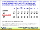 A majority (68%), compared to 50% in March, reject the idea of holding the next elections in 2010 and extending the terms of all officials. Opposition to the idea of letting the head of government be elected by legislators instead of directly by voters likewise increased from 56% in March to 65% in September.