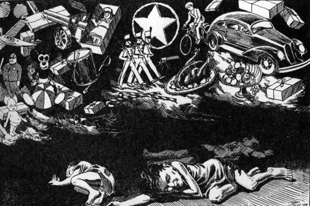 Yet, as this editorial cartoon from 1939 shows, with commercialization came conscientious voices, bothered by excess. And with that view, the see-sawing moral struggle we face every holiday: excess and guilt in equal measure.