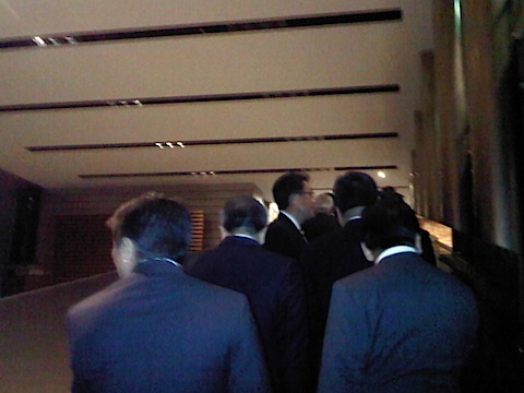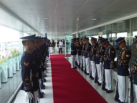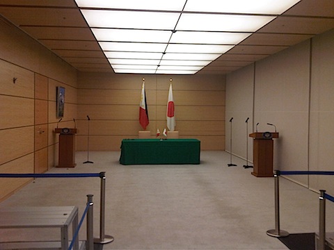 Entering the room for the bilateral meeting between the President of the Philippines and the Prime Minister of Japan.