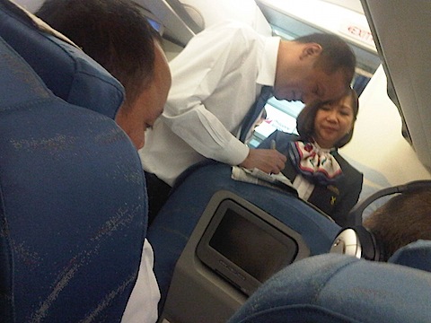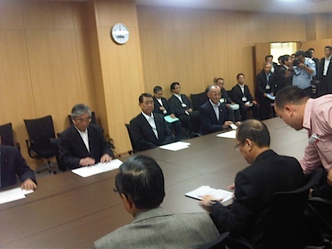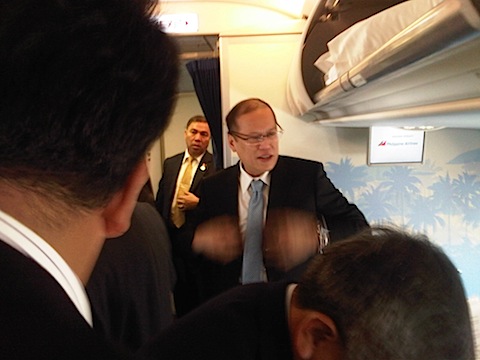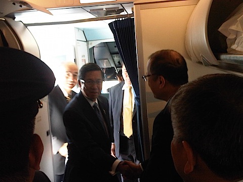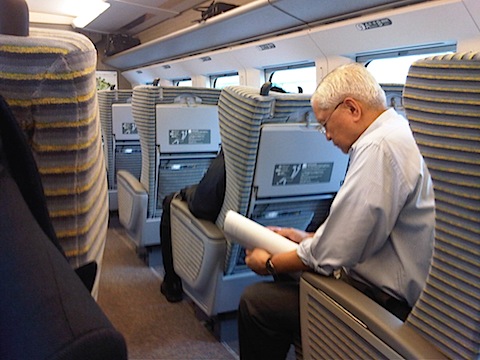 Onboard the Hayate 17 Bullet Train: Foreign Affairs Secretary Albert del Rosario reviews briefing documents.