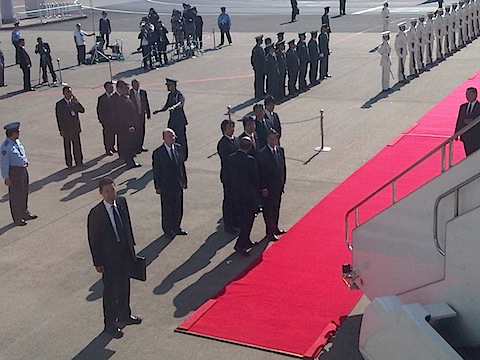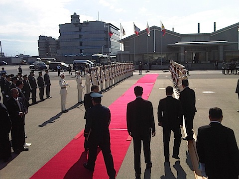 Tokyo Haneda Airport: Ambassador Lopez and other officials prepare to board the aircraft to welcome the President.