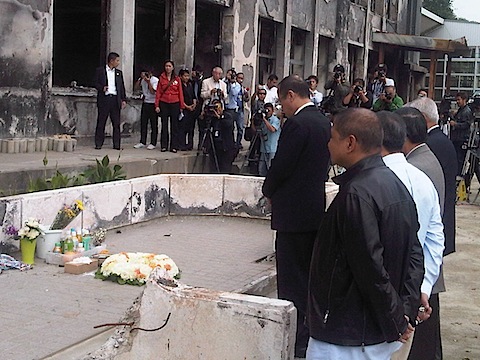 The President lays a wreath in memory of the schoolchildren that died in the Kadonowaki School.
