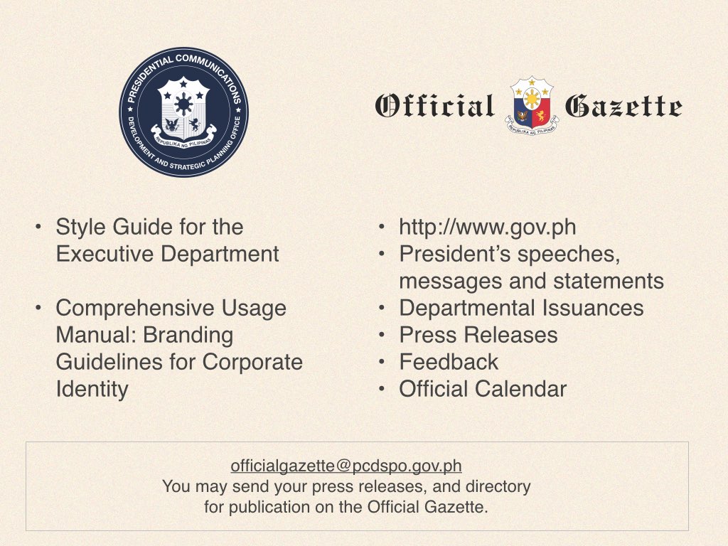 Venue: Social Hall, 4/F Mabini Hall, Malacanan Palace, Manila