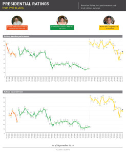 Now let us take a look at another firm’s findings. This provides a guide to follow the ups and downs that took place in the events of 2013 to the present. We know the biggest controversies of the period: PDAF and DAP, Typhoon Yolanda, and Mamasapano.