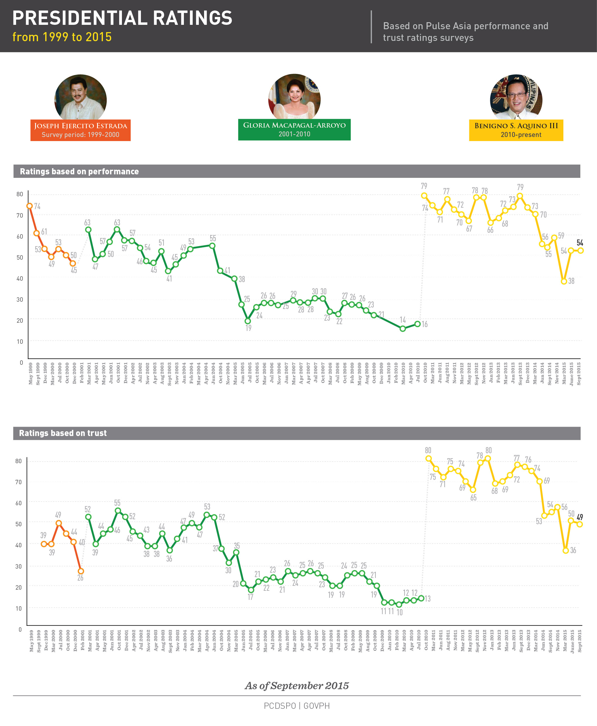 Each of these events had the biggest effect on the President’s performance and trust ratings. Each provided a challenge to the President’s effectivity and credibility, and to the disappointment of his critics he recovered from each.
