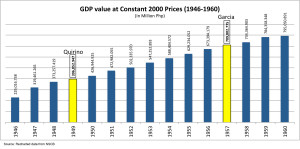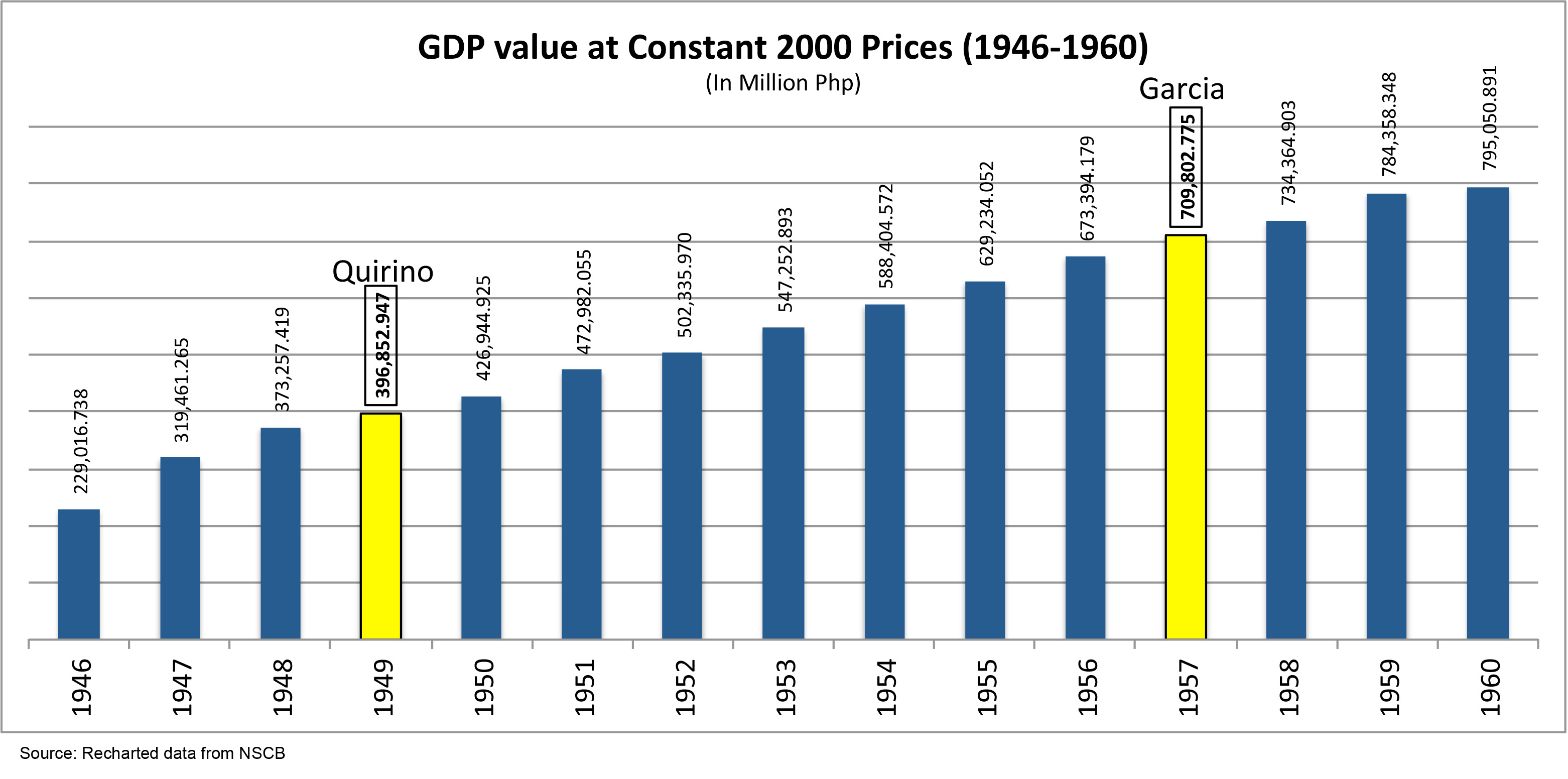 If the 1949 and 1957 elections were the last elections where the administration candidates ran on the record and achievements of the predecessor, the circumstances are different today because President Aquino can actually campaign for his chosen successor. Still, a further similarity is that during those times, the country was experiencing a stabilizing economy and had improving GDP figures. Put another way, the economy was such that campaigning on a platform of continuity was viable. But good economic numbers do not necessarily translate to electoral success, if a government has lost public confidence (as Quirino and Garcia would find out the next time around, in 1953 and 1961, respectively, when they lost, hounded by political controversy).