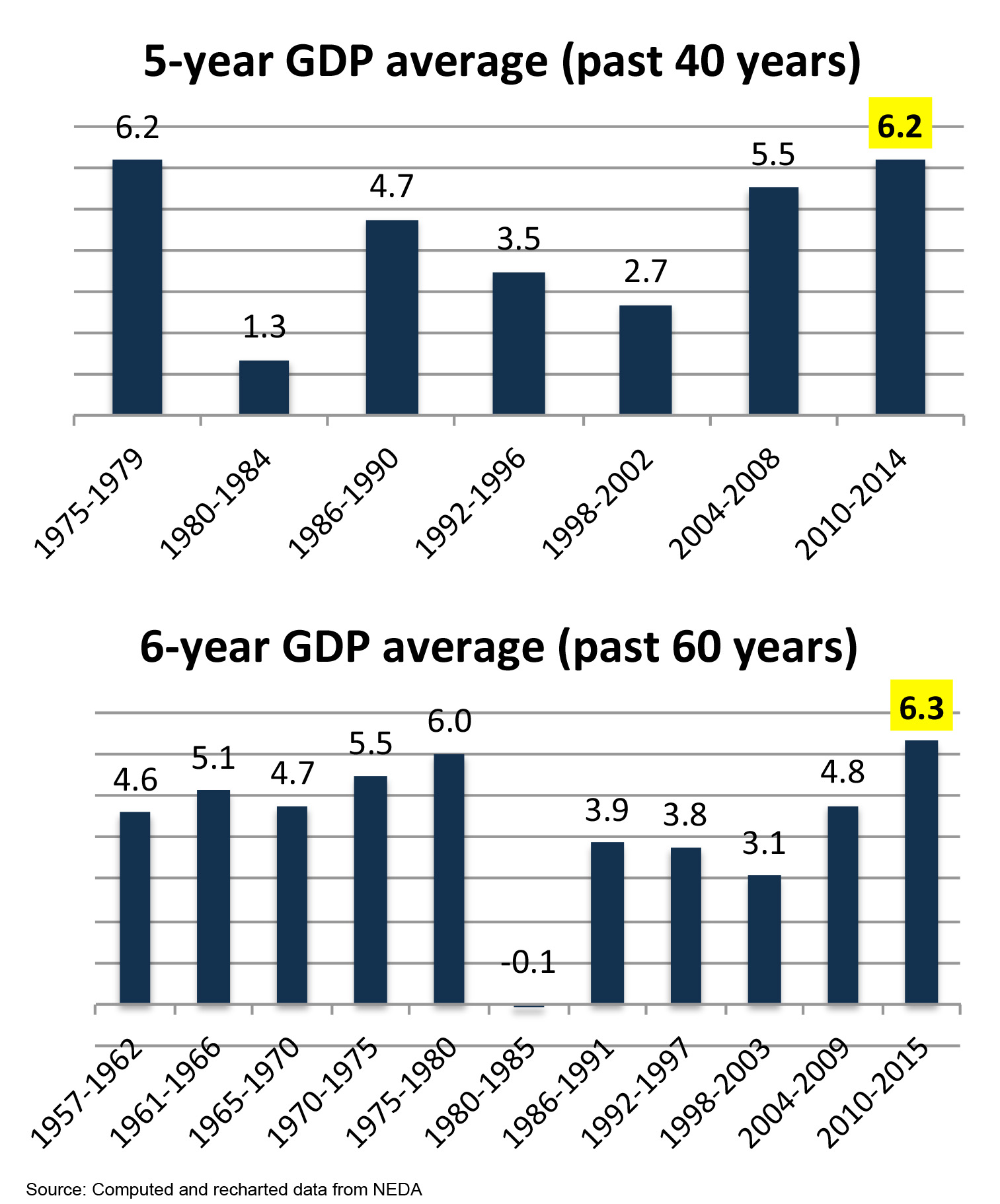 According to NEDA Sec. Balisacan, at 6.2%, we currently have the highest 5-year average GDP growth for the past 40 years.