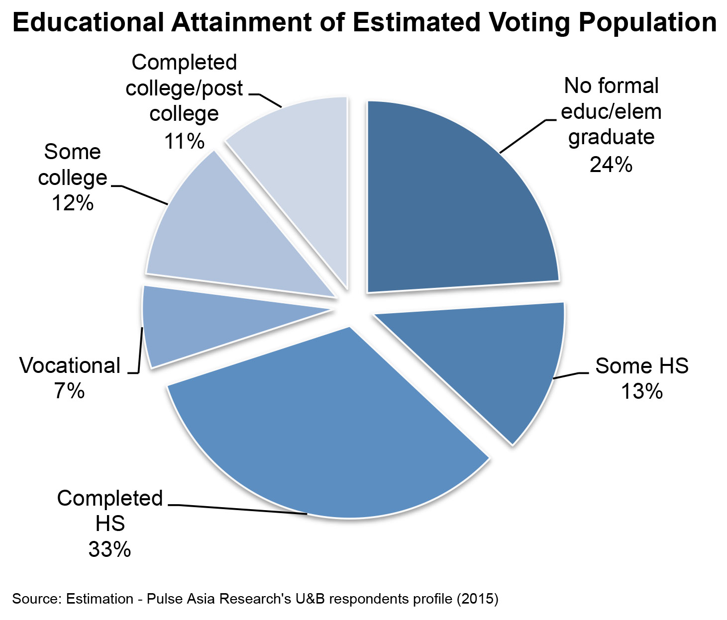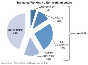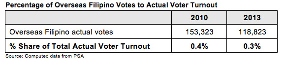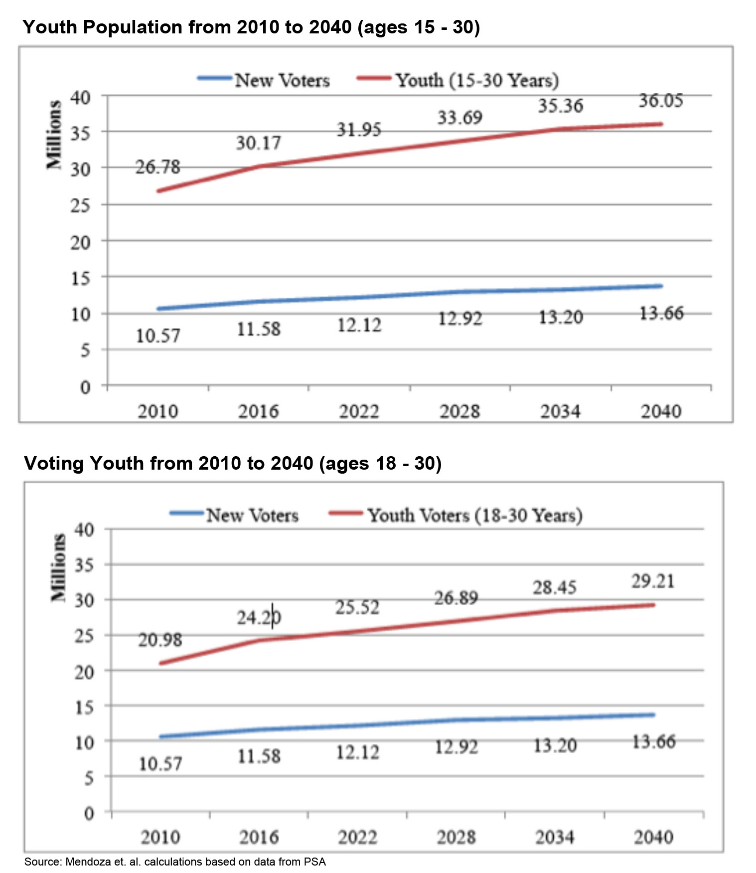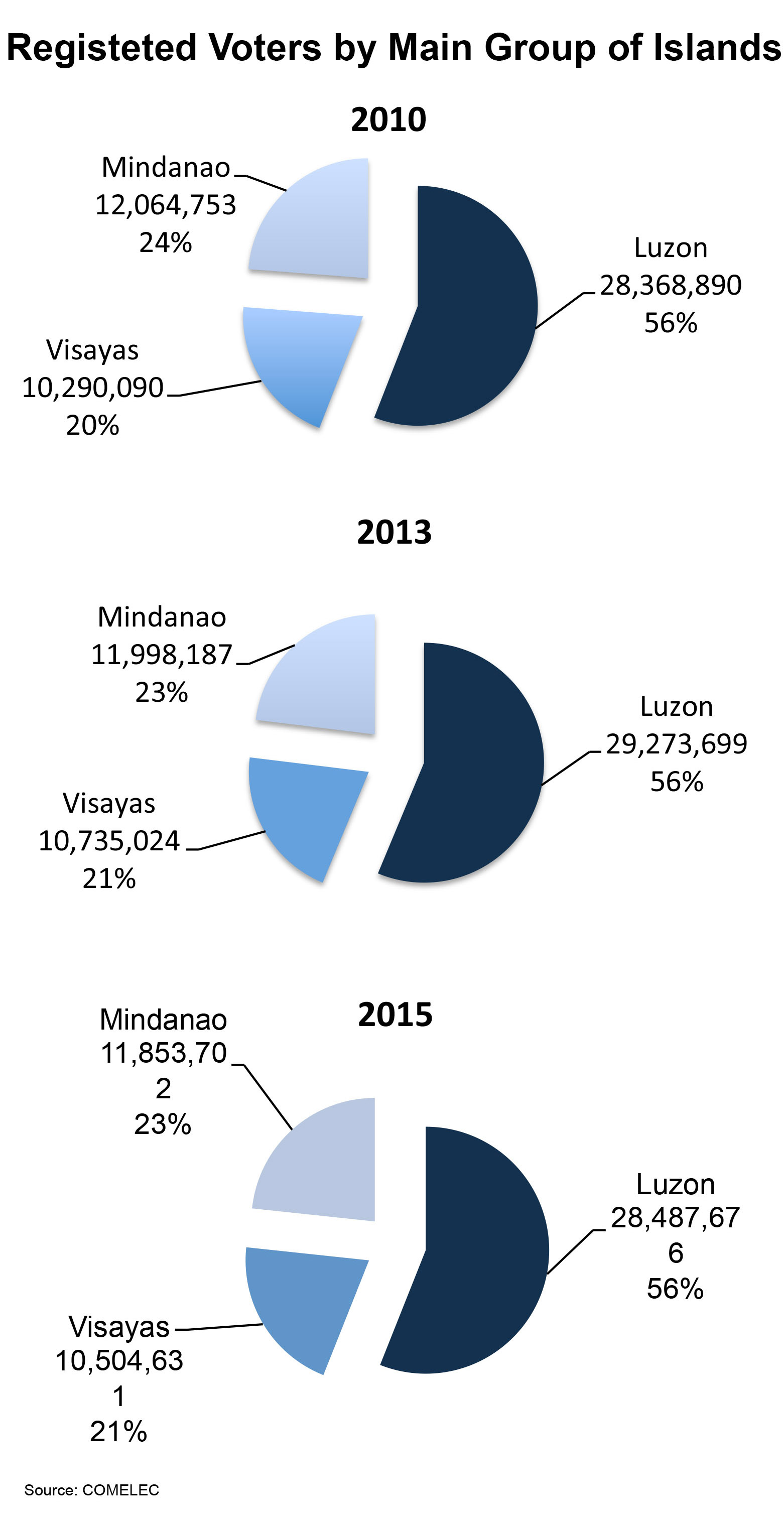 In 2010, only 41% of the total population voted while 59% did not. Based on the population projections by the Philippine Statistics Authority (PSA), the percentage of voters in 2013 was still about 41%. Based on COMELEC and PSA estimates, the same percentage of voters out of the total population is also expected in 2016 at around 40.5 million.