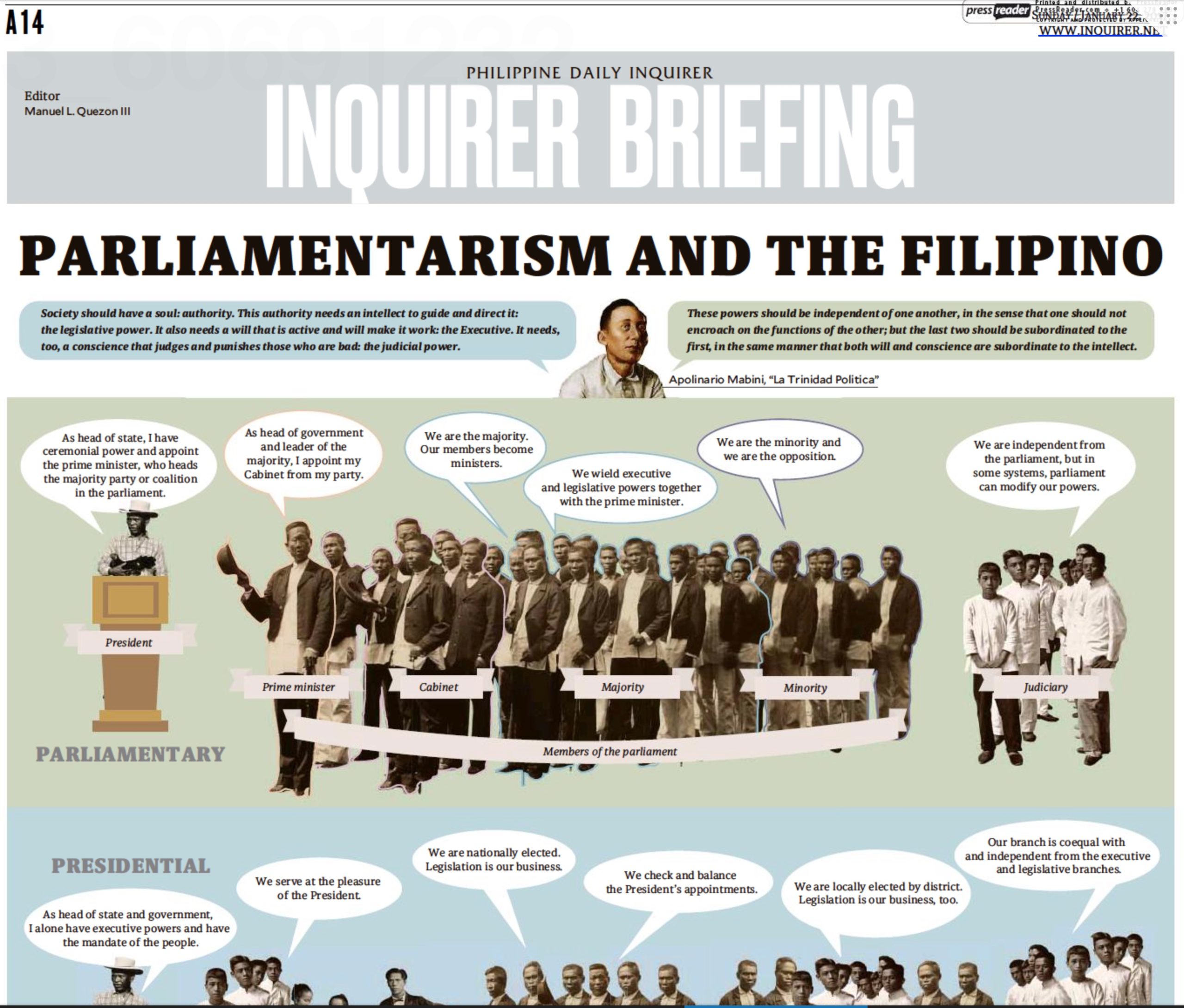 Posted in Inquirer BriefingInquirer Briefing: Parliamentarism and the Filipino Manuel L. Quezon III January 22, 2017 Leave a Comment on Inquirer Briefing: Parliamentarism and the FilipinoAuthor: Manuel L. Quezon IIIManuel L. Quezon III.
