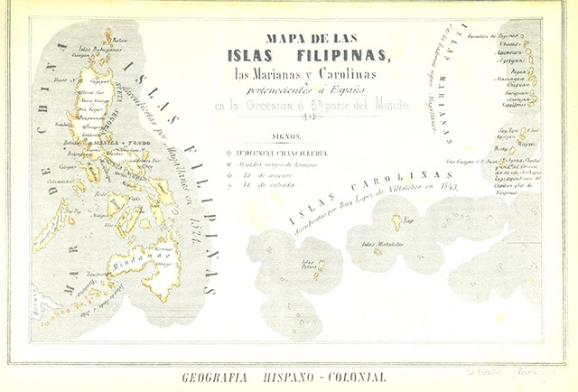 Philippine map from 1857. The Philippines as the Spanish viewed and administered it until 1898. Palaos is Palau; Carolinas is Micronesia; Guajan is Guam, with its capital, Agaña, labeled “Capital and residence of the governor of this archipelago, a dependency of the Captain-General of the Philippines.”