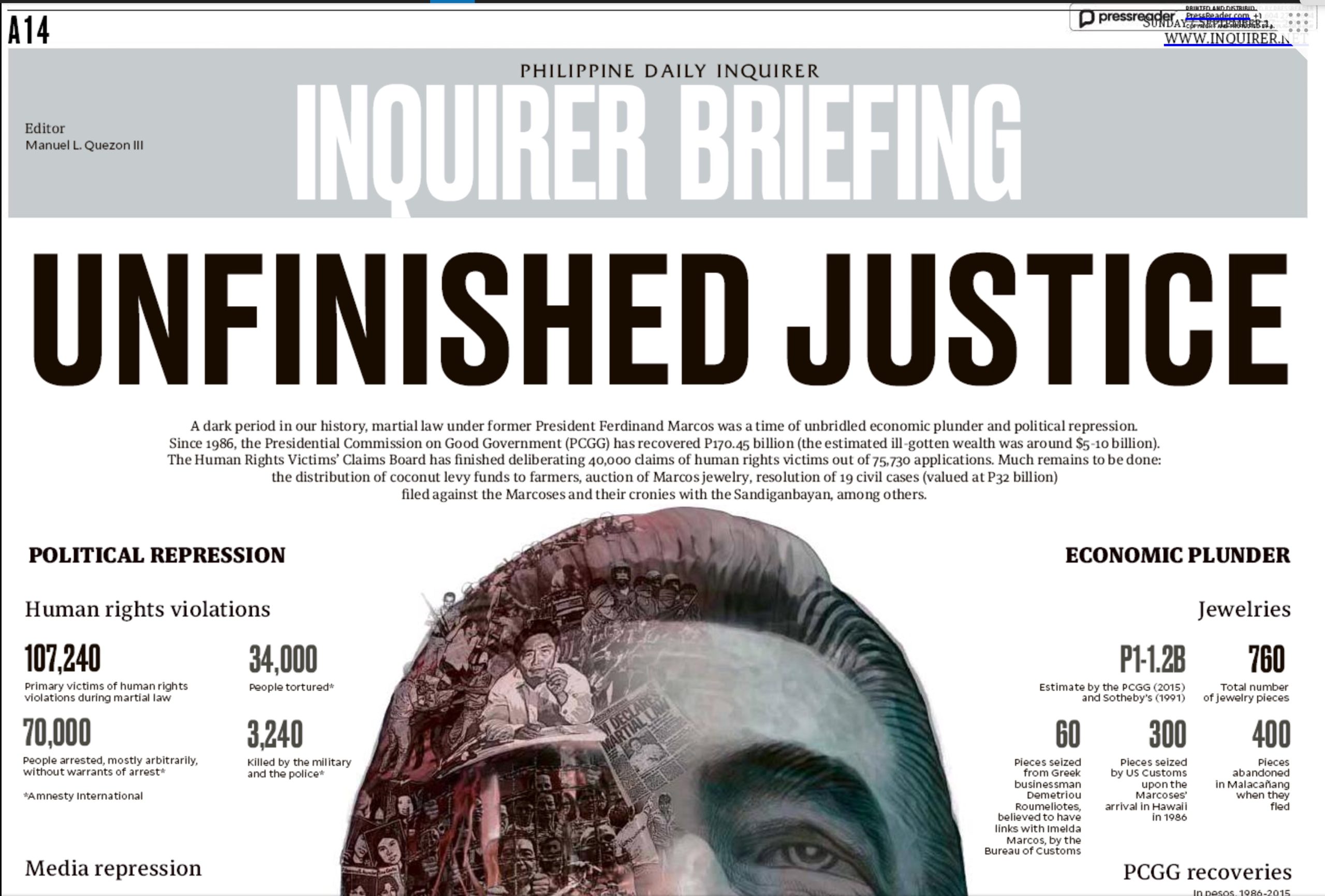 Posted in Inquirer BriefingInquirer Briefing: Unfinished Justice Manuel L. Quezon III September 17, 2017 Leave a Comment on Inquirer Briefing: Unfinished Justice#TintaAwards: silver medal for “UnfinishedJustice,” 2017Author: Manuel L. Quezon IIIManuel L. Quezon III.