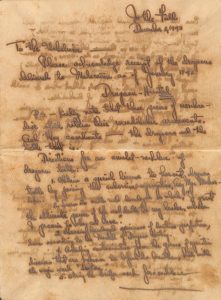 A close reading of FM’s letters is interesting but let’s move on to another letter, also sent from the field, via the guerrilla network, to my aunt Nini’s sister, my other aunt, Baby. It was from Primitivo San Agustin Jr. who was a co-founder of President Quezon’s Own Guerrillas. It’s dated Nov. 17, 1943.