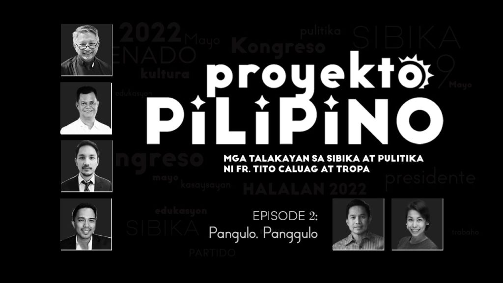 Join Fr. Tito Caluag and his friendly trio of distinguished thinkers—Dr. Leloy Claudio, Manolo Quezon, and Carlo Santiago—as they tackle the requirements and the nuances of the highest position in the land. In this episode, Atty. Ato Salud and Julia Abad will give us an exclusive peak into what happens behind the closed doors of Malacañan Palace and how Presidents Noynoy Aquino, Gloria Macapagal Arroyo, and Fidel V. Ramos ran their offices. This will hopefully help us understand the tremendous demands from whoever is going to fill the presidential position, and vote for the right candidate come election day.
